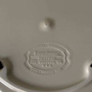 This is a set of 2 Vintage Longaberger Pottery American Craft Originals Ceramic Trivets with a rooster in the center. Color is paprika. The trivets measure about 7 7/8" in diameter. In very good pre-owned condition. No chips or cracks. I had put small felt squares on the underside of the trivets to keep them from scratching the table and countertops.