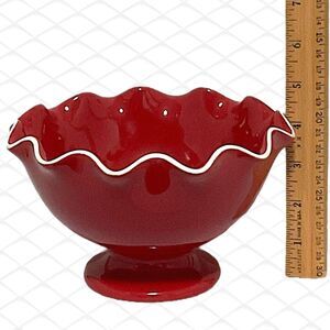 Longaberger Pottery Be My Valentine Red Ruffled Bowl #31527 Ceramic Candy Dish