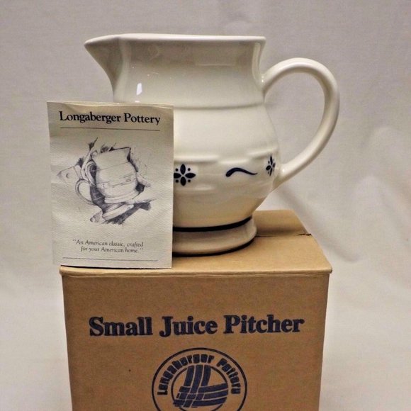 Longaberger Pottery Classic Blue Juice Pitcher Roseville Ohio 1991 Original Box