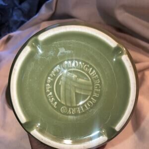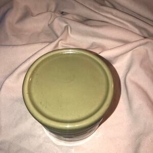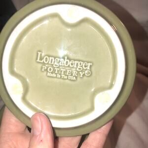 Longaberger Pottery EUC Green Woven Traditions Salt Crock/Butter Bowl with Lid