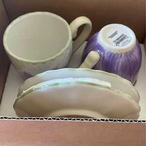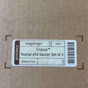 Longaberger Pottery Teacups And Saucers (2) Purple Crocus Flowers