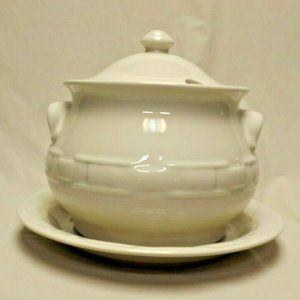 Longaberger Pottery Woven Traditions Heirloom Ivory Hostess Soup Tureen