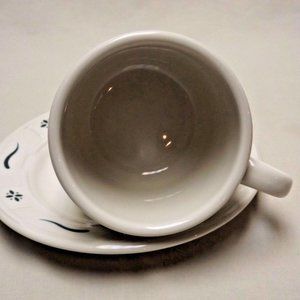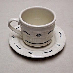 We are offering this Longaberger Pottery woven traditions 8 oz. cup and saucer for sale.