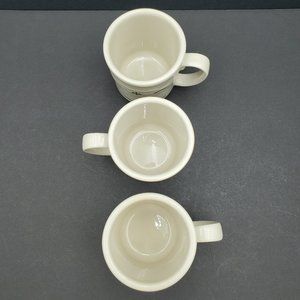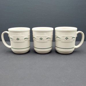 Longaberger Pottery Woven Traditions Heritage Green Coffee Mugs - Set of 3. Excellent pre-owned condition. Approx. 3.25" across and 4" tall.