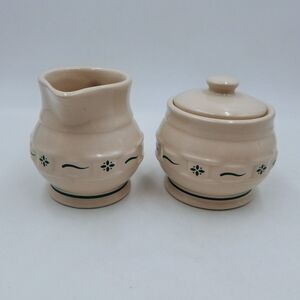 Longaberger Pottery Woven Traditions Heritage Green Sugar Bowl & Creamer Set USA