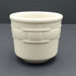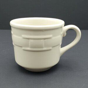 Longaberger Pottery Woven Traditions Ivory Flat Cups / Small Coffee Mugs / Teacups - Set of 2. Excellent pre-owned condtion. These are the smaller mugs measuring 3" tall and 3-3/8" wide.