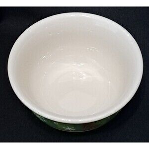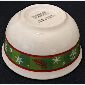 Longaberger Seasonal Christmas Dessert Bowl Ivory Green Red Snowflakes