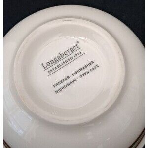 Pretty Christmas dessert bowl from Longaberger. Ivory with band green and red and snowflakes.