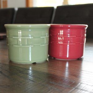 Longaberger Set of 2 Crocks Sage Green Paprika Fiesta