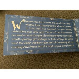 Longaberger Snow Friends Pewter Ornament Christmas Collectible Set of 2