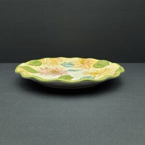 Longaberger Pottery Sunflower Luncheon Plate. Excellent pre-owned condition. 9.5". Very pretty floral pattern featuring pink and yellow flowers and blue and green leaves. As of this writing, I have 2 of these plates available and also 4 soup/cereal/salad bowls. (Please check with me before bundling due to weight.)