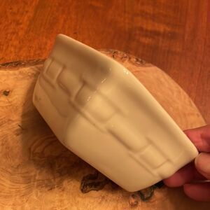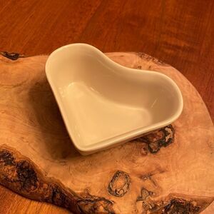 EUC. Retired Longaberger Sweetheart Little Love Woven Traditions Heart Shaped Dish (from 2000). Solid Cream Color. Measures approx. 5 1/4 inches wide, 4 3/4 inches long, and 2 inches tall,