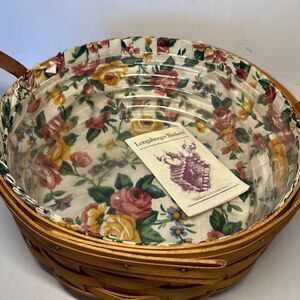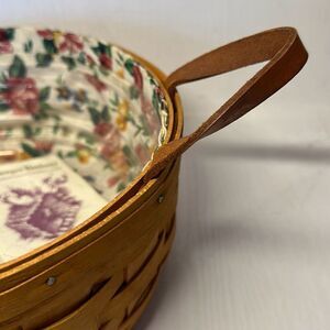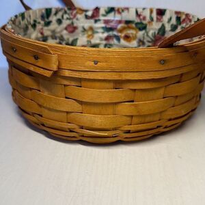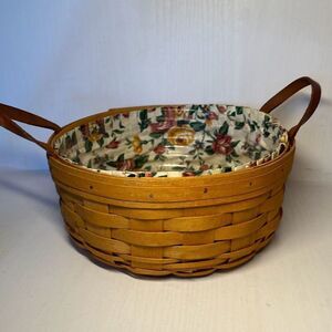 Longaberger Vintage Darning 1995 Round Basket Leather Handles Floral Liner