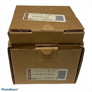 Brand new in box. Color is paprika. Includes felt pads for bottom. Perfect for dry goods. Measures 3 1/2” x 4 1/2”.