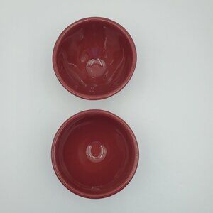 Longaberger Pottery Woven Traditions Paprika Footed Ice Cream Cups, Ice Cream Bowls, Dessert Dishes - Set of 2. Excellent pre-owned condition. 5" across the top and 2-5/8" tall.