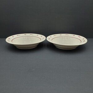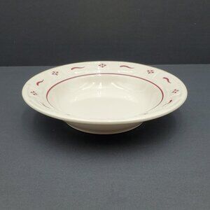 Longaberger Pottery Woven Traditions Red Rim Soup Bowls. Paprika Rimmed Salad Bowls Pasta Bowls - Set of 2. Excellent pre-owned condition with one having a few lines of very light scratch. 8" x 1-5/8".