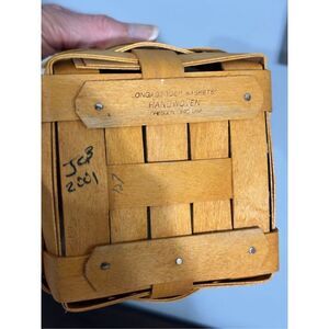 Longaberger basket with lid and pastel plaid fabric liner 2001