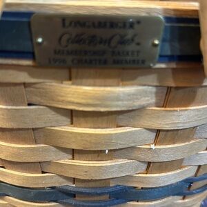Longaberger collectors club membership basket, 1996 charter member in very good condition but no liner. Measurements are 9 inches wide and 9 inches long.