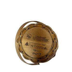 Longaberger basket. Features a natural brown and red weave. Includes a sturdy handle. Tree trimming collection. Holiday inspired. Excellent preowned condition.