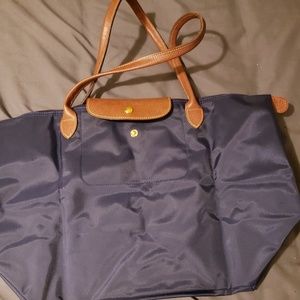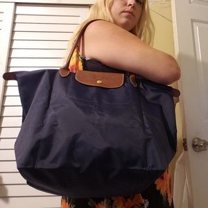 Beautiful brand new without tags large navy blue Longchamp overnight bag.