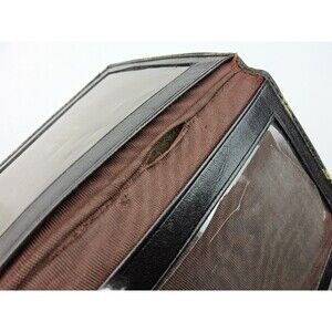 Pre-owned condition. There is a tear on the inside liner. There are some large cracks on one clear windows pocket. Measures approximately 4.5x3. Please see photos for detailed condition.