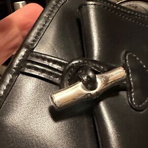 Elegant black backpack by Longchamp. Sleek design with a stylish clasp. Ideal for daily use. Vintage bag , used but grate condition inside like new. Free o door home