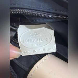 Elegant Longchamp bag in black with cream accents. Ideal for versatile styling.