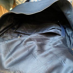 I bought this longchamp backpack in Paris. Soft, supple leather, and comfortable fit. Has front pockets and side pockets. Main compartment is spacious and can hold a laptop, ipad, and clothes for a short weekend trip. Beatutiful blue color and in great condition. I only wore this backpack twice. Fashionable, and can be worn by a man or woman.