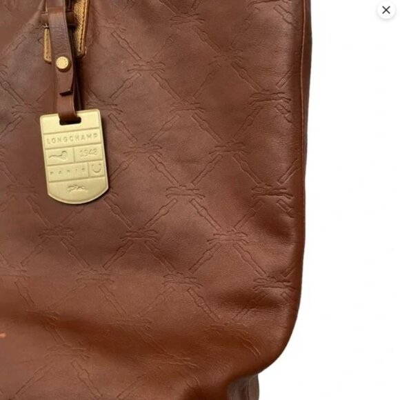 LONGCHAMP Brown Leather Tote Bag Shoulder Bag Embossed Horse Print. Great condition.