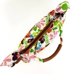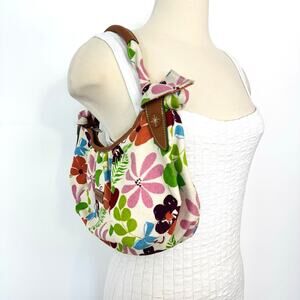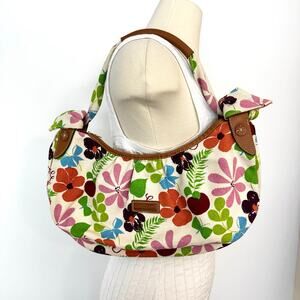 Longchamp Floral Canvas Leather Trim Shoulder Bag Baguette Made in France
