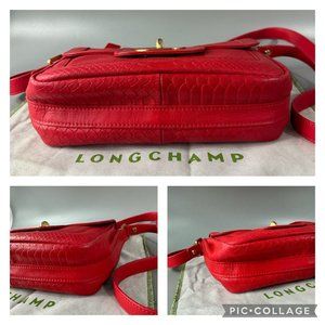 Longchamp Gatsby Python Embossed Leather Shoulder Bag in Red