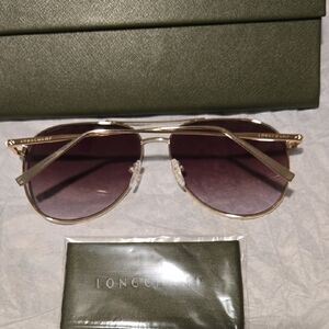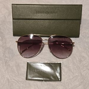 Stylish Longchamp aviators with a sleek gold frame. Features elegant gradient rose lenses. Ideal for a modern look. French luxury
