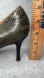 In great preowned condition- small scrape to the back of the right heel stem. Please view all photo for features, condition, & measurements.