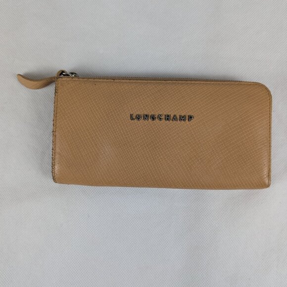 Longchamp Le Pliage Beige Leather Long Wallet for Women, Good Condition!