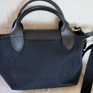 Longchamp Le Pilage Energy Xs crossbody bag in black.