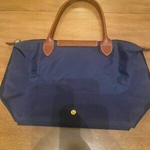Longchamp Le Pliage Foldable Tote Bag in Navy Blue.
