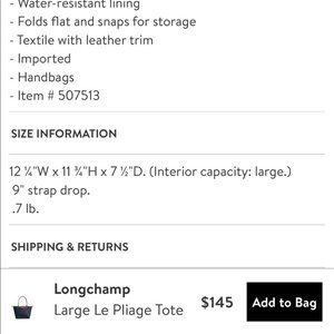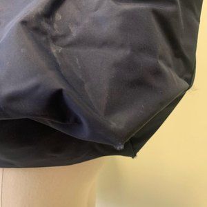 This is a well used Longchamp Le Pliage Tote in Navy. There are marks on the exterior and interior (see pics for more details). Small holes at the bottom of the corners of the bag. I haven’t tried to wash it, just wiped it down.