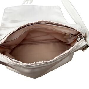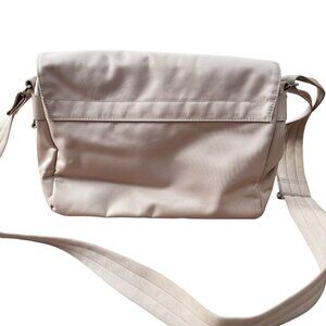 Features: Adjustable nylon Crossbody strap, flap over closure, exterior zip pocket on front flap, interior zip pocket, logo tab, lightweight, water resistant