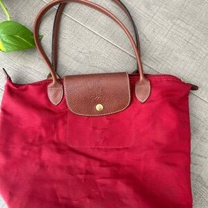 Longchamp Le Pliage Small Satchel Bag – Red/Leather Trim
