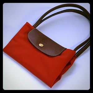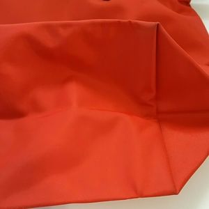 Preloved and worn several times. This bag is very handy and durable, while the color pops nicely. In very good condition, just on the corners show signs of wear (3rd picture). Original card care still inside bag but no tag. Measures 10x14x5" with 8" handle Color in the picture looks bright orange due to sun, but original is more red with a hint of orange.