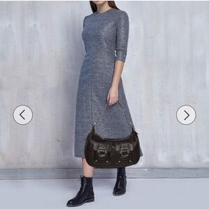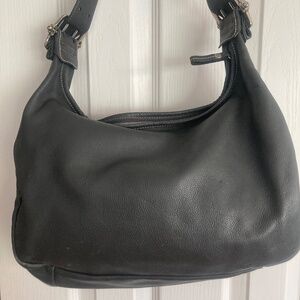 This hobo from Longchamp has been designed to be a worthy style companion? Crafted from leather, the bag features magnetic close flap pockets on the front.It is equipped with an adjustable, single handle and fabric lined interior for you to carry essentials in. Hardware is silver tone It is a mocha grayish color. It is 9 1/2 inches length, 14 1/2 inches wide. Zip interior pockets inside. Longchamp logo on all metal parts and the inside lining. It is used but in good condition. Please see photos for and defects.