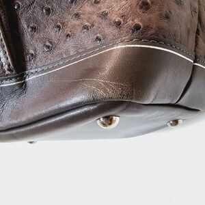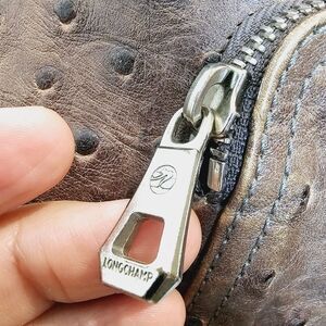 Longchamp Legende Hobo Brown Ostrich Embossed Bag Top Handle Carry Handbag