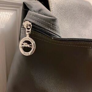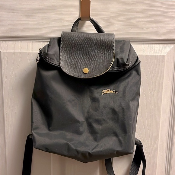 this is a gray le pliage mini backpack in good pre-loved condition EXCEPT that the zipper is broken. If you can fix it, you’ve got a great bag at a great price! see all photos for detail. 😊