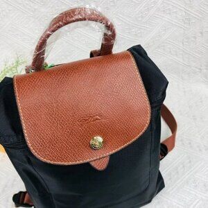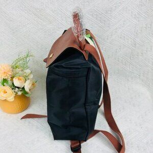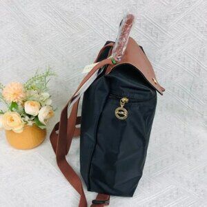 Textured leather trim and a logo zipper pull add signature finishing touches to a sleek nylon backpack that's perfectly proportioned for everyday use. The water-resistant lining and fold-flat design further the utility of this stylish go-to.