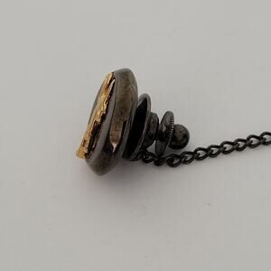 Longchamp Necktie Tie Pin Gun Metal Logo Round Horse Vintage Small