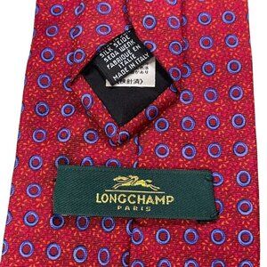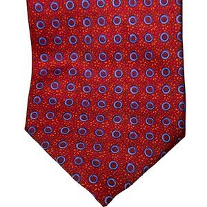 Longchamp Paris 100% Silk Necktie (Made in Italy) Geometric Floral Circle AOP
