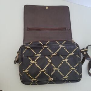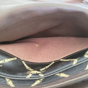 Longchamp Paris Signature Geniue Leather Brown Flap Shoulder Bag Purse Medium