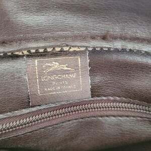 Longchamp Paris Signature Geniue Leather Brown Zip Shoulder Bag Purse Medium