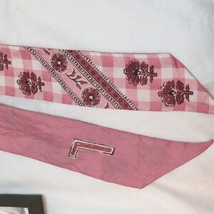 Longchamp Silk Pink Floral Le Pliage Twilly Scarf Pink White Gingham