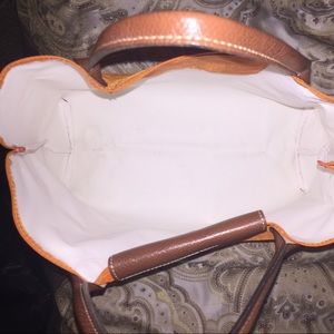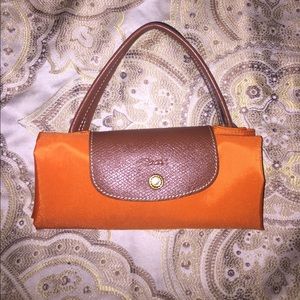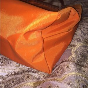 Medium sized Le Pilage Orange Longchamp Tote. This bag can fold to a small compact size. Great for traveling! In great condition! Small soil in the bag but easily fixable. No rips or major soiling.
